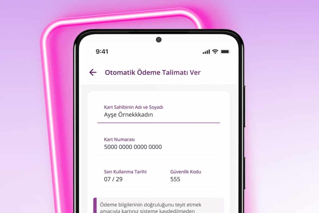Faturalarınızı hızlı ve güvenli bir şekilde ödeyebilir, otomatik ödeme talimatı vererek zamandan tasarruf edebilirsiniz.
